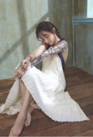 中国纹身明星 姚笛手臂上黑灰纹身图片