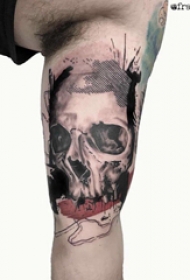 骷髅纹身花臂 男生大臂上抽象的骷髅纹身图片