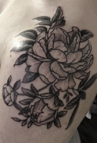 花卉纹身花臂 男生手臂上黑色的花朵纹身图片