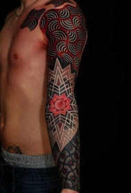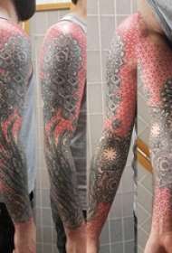 几何花臂纹身图案 男生手臂上彩绘几何花臂纹身图片