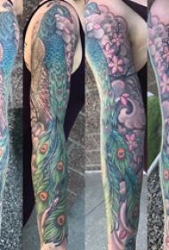 孔雀毛纹身 男生手臂上彩绘的孔雀毛纹身图片
