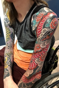 欧美花臂纹身 男生花臂蛇和花朵纹身图片