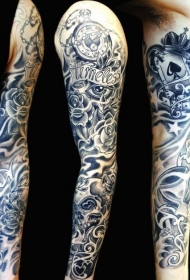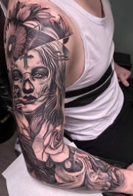 欧美花臂纹身_22张霸气黑灰欧美大黑花臂纹身图案作品图片