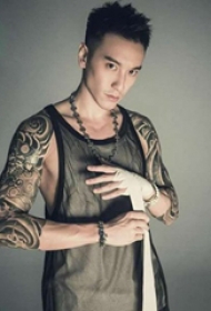 王阳明的纹身 明星手臂上黑灰色的花臂纹身图片