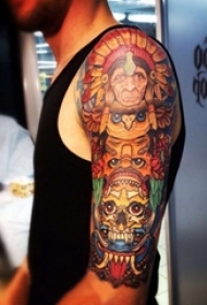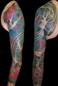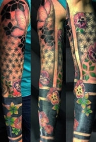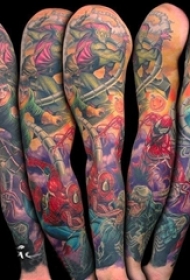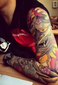 日本纹身 男生手臂上彩色的花臂纹身图片
