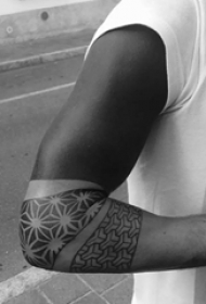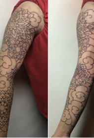 简单线条纹身 男生手臂上黑色的花朵纹身图片