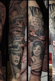 人物花臂纹身图案 男生手臂上黑色的人物纹身图片