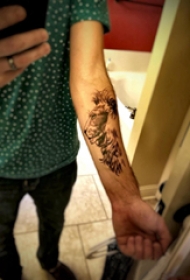 狮子花臂纹身图案 男生手臂上威武的狮子纹身图片