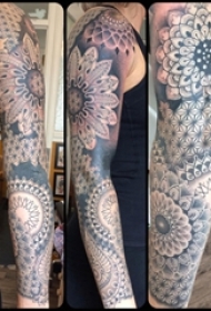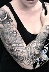 女生手臂上黑灰素描点刺技巧霸气花臂纹身图片
