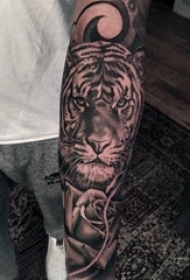 男生手臂上黑灰素描点刺技巧霸气老虎 花臂纹身图片