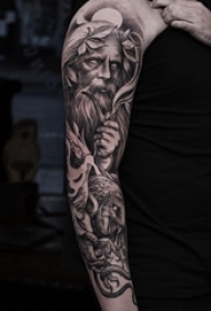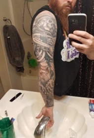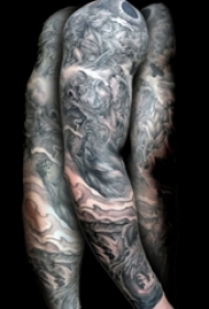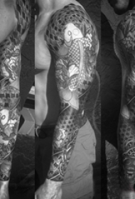 花臂纹身男生手臂上黑灰的花臂纹身图片
