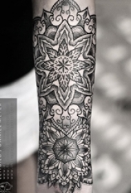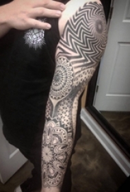 男生手臂上黑灰点刺几何简单线条植物花臂纹身图片