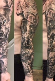 花臂纹身男生手臂上狼图腾花臂纹身图片
