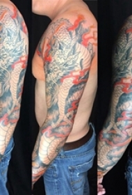 男生手臂上彩绘水彩素描霸气经典龙图腾花臂纹身图片