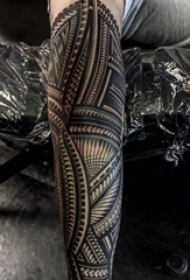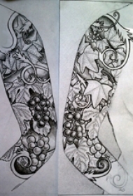 多款男生手臂上黑色线条素描点刺技巧霸气花臂纹身图案