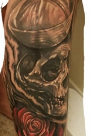 骷髅花朵纹身图案 男生手臂上骷髅花朵纹身图案
