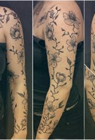 欧美花臂纹身 女生手臂上黑色花朵纹身图片