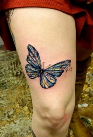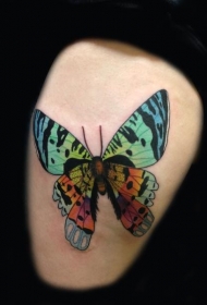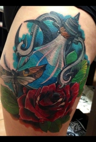 大腿彩色玫瑰和蝴蝶魔术罐纹身图案