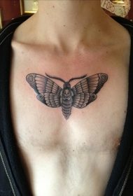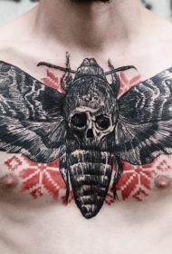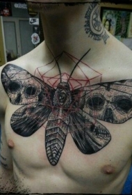 胸部雕刻风格大蝴蝶与骷髅纹身图案