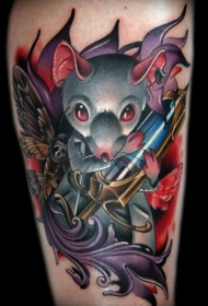 恐怖风格可怕的老鼠与针管和蝴蝶纹身图案