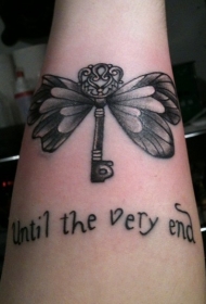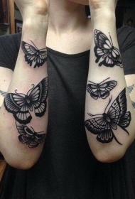 女孩子手臂写实的黑色蝴蝶纹身图案