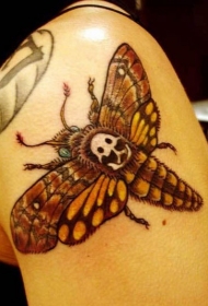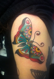 大臂卡通风格彩色蝴蝶与骷髅纹身图案