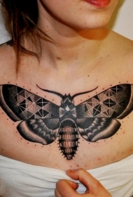 胸部装饰风格彩色蝴蝶与几何纹身图案
