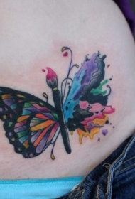 腹部可爱的水彩风格蝴蝶纹身图案