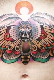 腹部插画式蝴蝶骷髅纹身图案