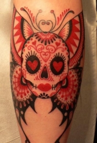 墨西哥风格骷髅与蝴蝶翅膀纹身图案
