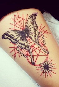 大腿几何风格蝴蝶彩色纹身图案