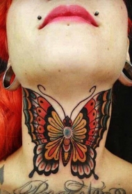 颈部水墨画蝴蝶纹身图案