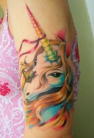 大臂可爱的蝴蝶和独角兽纹身图案
