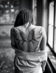 女性背部唯美漂亮的蝴蝶翅膀纹身
