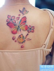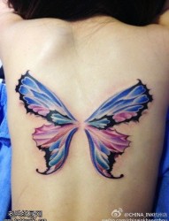 女性背部唯美漂亮的蝴蝶翅膀纹身