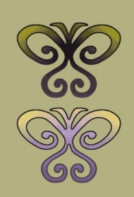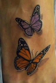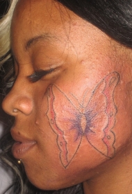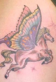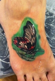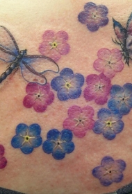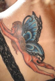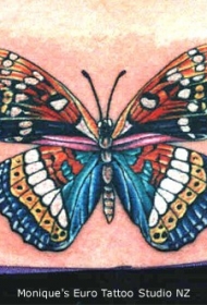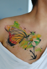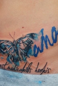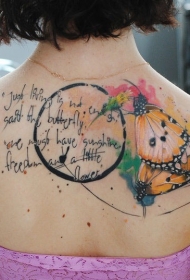 背部水彩画风格蝴蝶和英文字母纹身图案