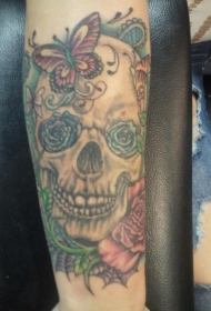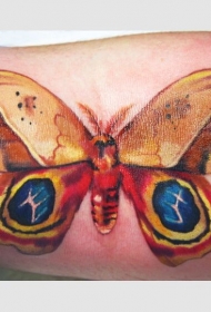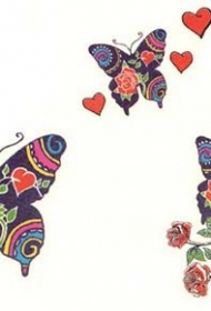 小臂old school红玫瑰与匕首蝴蝶翅膀纹身图案
