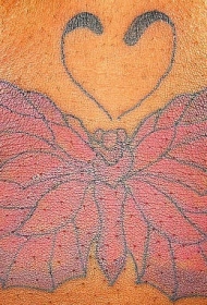 紫色蝴蝶和心形纹身图案