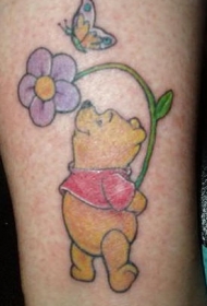 小熊维尼鲜花和蝴蝶纹身图案