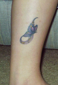 小腿彩色蝴蝶纹身图案