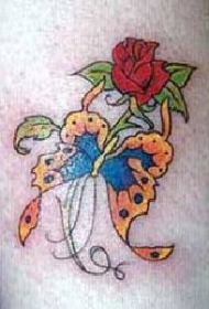 红玫瑰与黄蝴蝶纹身图案