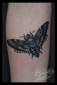 写实风格黑色飞蛾与骷髅手臂纹身图案