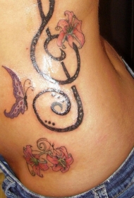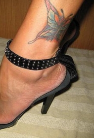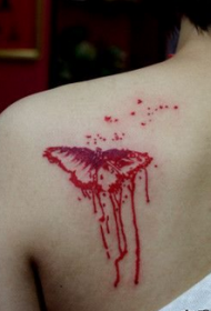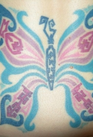 女生背部精美的彩色图腾蝴蝶纹身图案