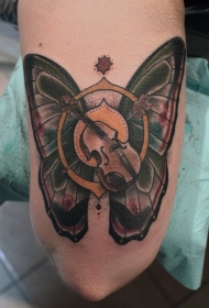 old school彩色蝴蝶和小提琴手臂纹身图案