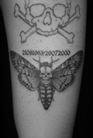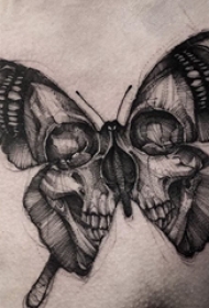 骷髅和蝴蝶纹身图案 女生腿上骷髅和蝴蝶纹身图片