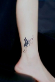 蝴蝶骨纹身 女生脚踝上黑色的蝴蝶纹身图片