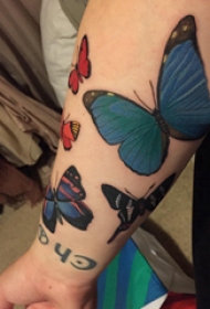 百乐动物纹身 女生手臂上彩色的蝴蝶纹身图片