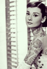 奥黛丽赫本纹身 奥黛丽赫本手臂上蝴蝶和动物纹身图片