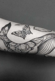 百乐动物纹身 男生手臂上蝴蝶和鲸鱼纹身图片