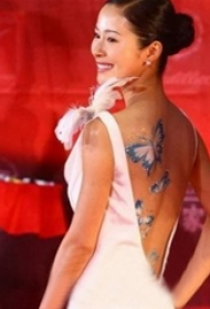 中国纹身明星 明星后背上唯美的蝴蝶纹身图片